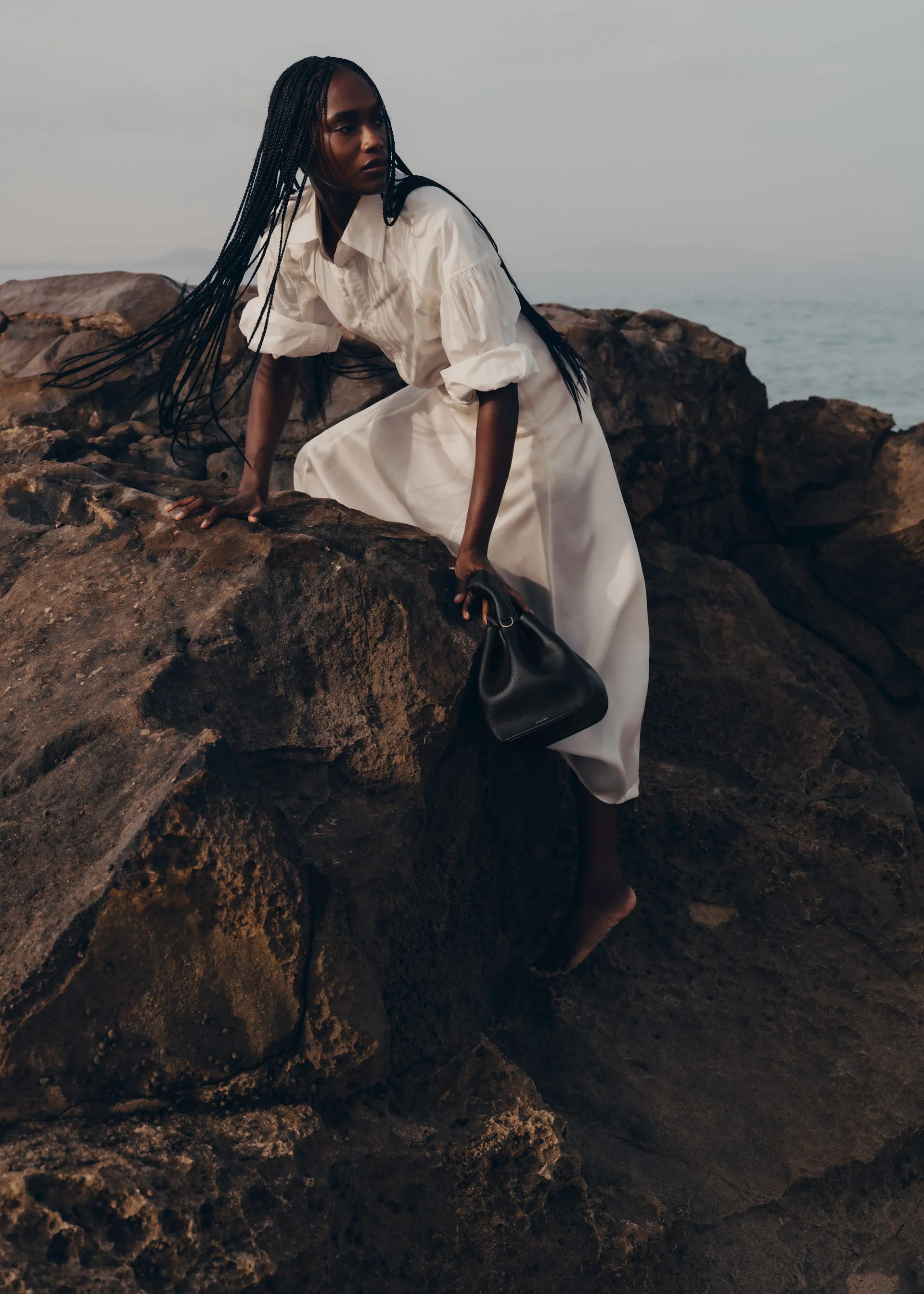 Yumuşak deri yüzeyi, ustalıkla yapılan el dikişiyle zarif bir şekilde şekillendirilmiştir. Her bir detayında sanatı ve estetiği hissedeceğiniz bu özel tasarım, stilinizi yumuşak dokunuşlarla taçlandırır. Esneklik ve form arasında kusursuz bir denge sunan organik tasarımıyla öne çıkar.