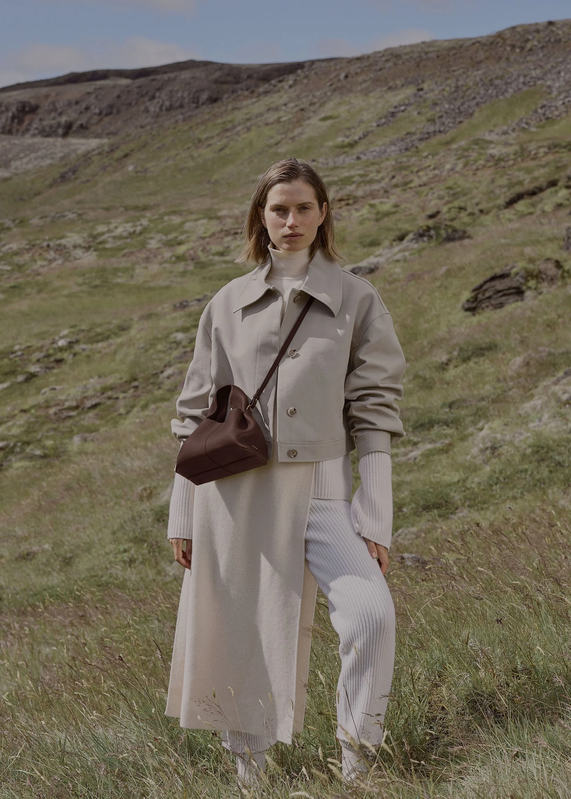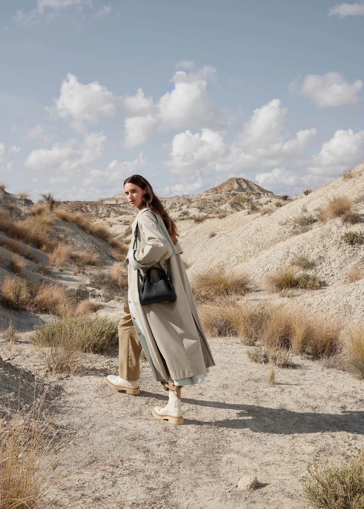 Yumuşak deri yüzeyi, ustalıkla yapılan el dikişiyle zarif bir şekilde şekillendirilmiştir. Her bir detayında sanatı ve estetiği hissedeceğiniz bu özel tasarım, stilinizi yumuşak dokunuşlarla taçlandırır. Esneklik ve form arasında kusursuz bir denge sunan organik tasarımıyla öne çıkar.