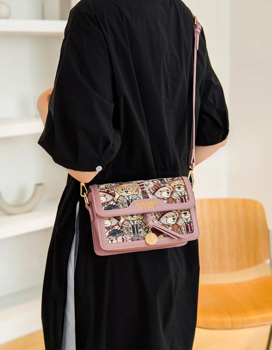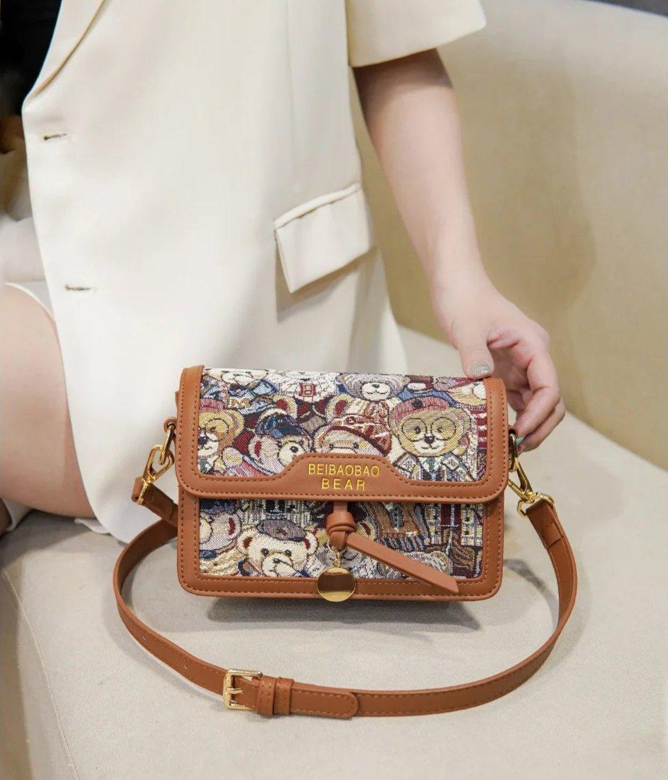 Selenors en nadir parçalarından olan Honey Serenità Çanta modeli, tatlı ayıcık baskıları ve zarif nakış işlemeleriyle dikkat çekerken tarzınıza göz alıcı bir lüks dokunuş katıyor. Renkleri ve tasarımıyla dikkat çeken bu özel parça, her kombini tamamlayacak şıklıkta.