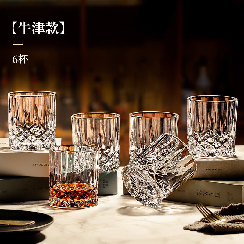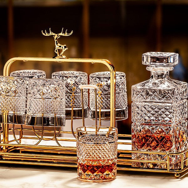 İtalyan oyma viski kadeh takımı, lüks brendi kadehleri ve kullanılmış içki saklama şişesi.
