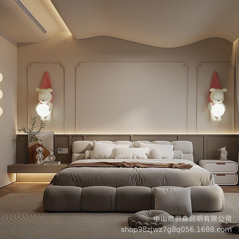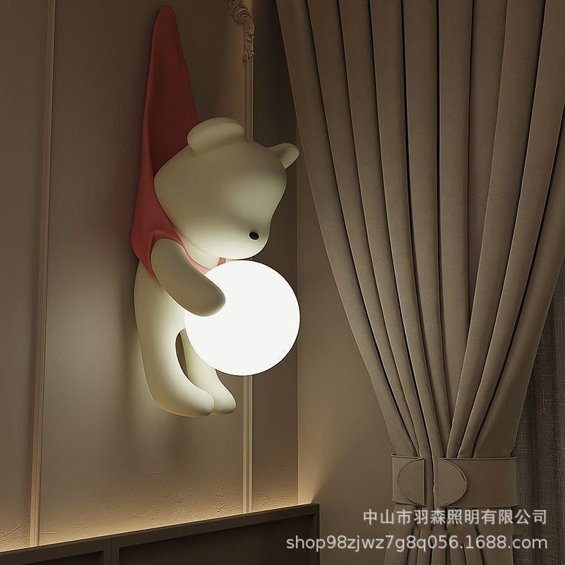 Ayı krem tarzı oturma odası arka plan duvar erkek ve kız yatak odası başucu lambası çocuk odası yaratıcı modern dekoratif duvar lambaları
