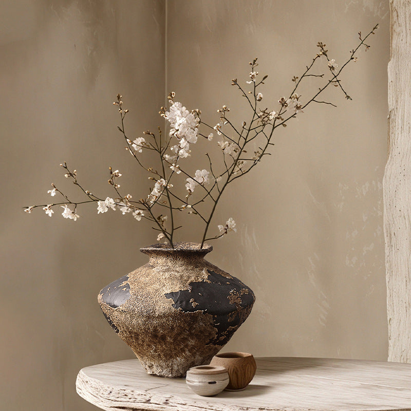 Yeni Çin tarzı seramik vazo süsleri, oturma odası çiçek aranjmanları, wabi-sabi tarzı, üst düzey retro TV dolapları, el yapımı seramik süslemeler